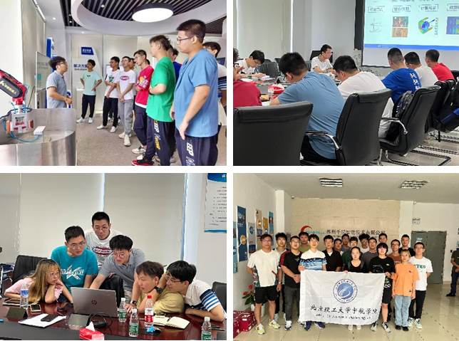 同学们在苏州参观了苏州同元软控信息技术有限公司与苏州千机智能技术有限公司。在同元软控,同学们听取了关于数字化时代变革的报告,体验了数字空间站、数字孪生系统、飞行模拟器等工程系统,还顺利完成了无人车控制系统的开发实践,有效地将所学到的建模与仿真知识融会贯通,做到学以致用,以用促学。在千机智能,同学们了解了企业打破国外技术垄断,打造出我国自主知识产权CAM软件的发展历程,参观了千机智能的数控加工车间,近距离观察了高精度航空航天零部件从数字建模、数控加工到质量检验、系统组装的生产流程。